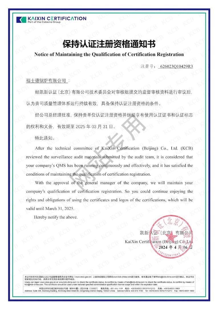福士德成立以來(lái),一直專(zhuān)注生產(chǎn)以油、氣、電為熱源的蒸汽鍋爐、熱水鍋爐、開(kāi)水鍋爐,生產(chǎn)低氮、節(jié)能、高效、環(huán)保鍋爐,福士德經(jīng)過(guò)15年的制造經(jīng)驗(yàn)累計(jì),目前部分鍋爐熱效率高達(dá)98-103%。擁有自動(dòng)化的鍋爐生產(chǎn)設(shè)備及完善的質(zhì)量保證體系,專(zhuān)業(yè)的技術(shù)及精湛的工藝,嚴(yán)格的質(zhì)量保證體系對(duì)整個(gè)生產(chǎn)過(guò)程的強(qiáng)化管理,追求高質(zhì)量、高科技、高起點(diǎn),目前全國(guó)運(yùn)行中的鍋爐近萬(wàn)臺(tái),客戶(hù)涉及酒店、學(xué)校、醫(yī)院、石化、化工、紡織、冶金、汽車(chē)、煙草、醫(yī)藥、食品等行業(yè),代表客戶(hù)有:中國(guó)石油、恒大集團(tuán)、正大集團(tuán)、三星集團(tuán)、安彩集團(tuán)、安鋼集團(tuán)、中興汽車(chē)集團(tuán)、昆侖燃?xì)夤?、華潤(rùn)燃?xì)夤?、河北子豐生物科技......
